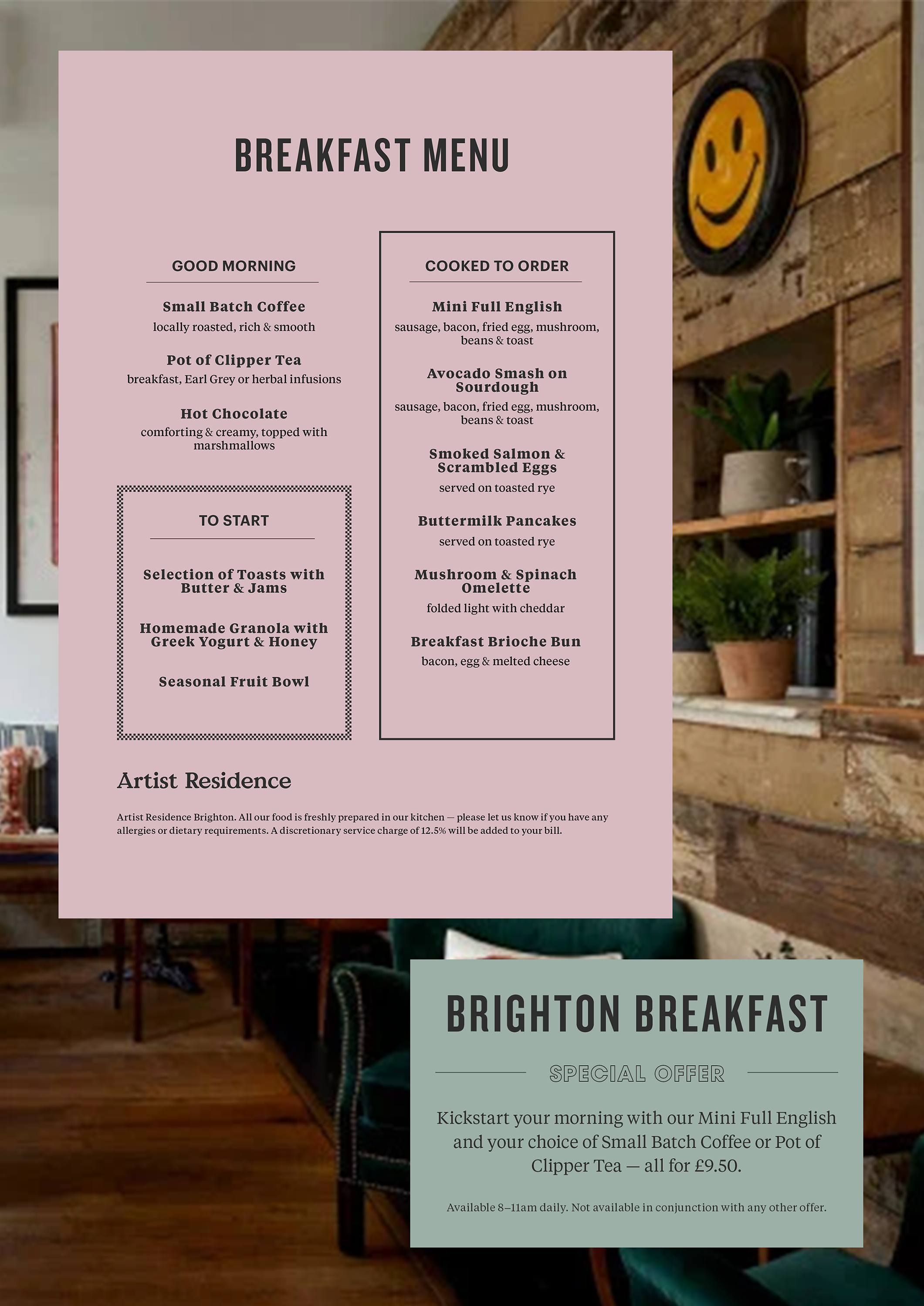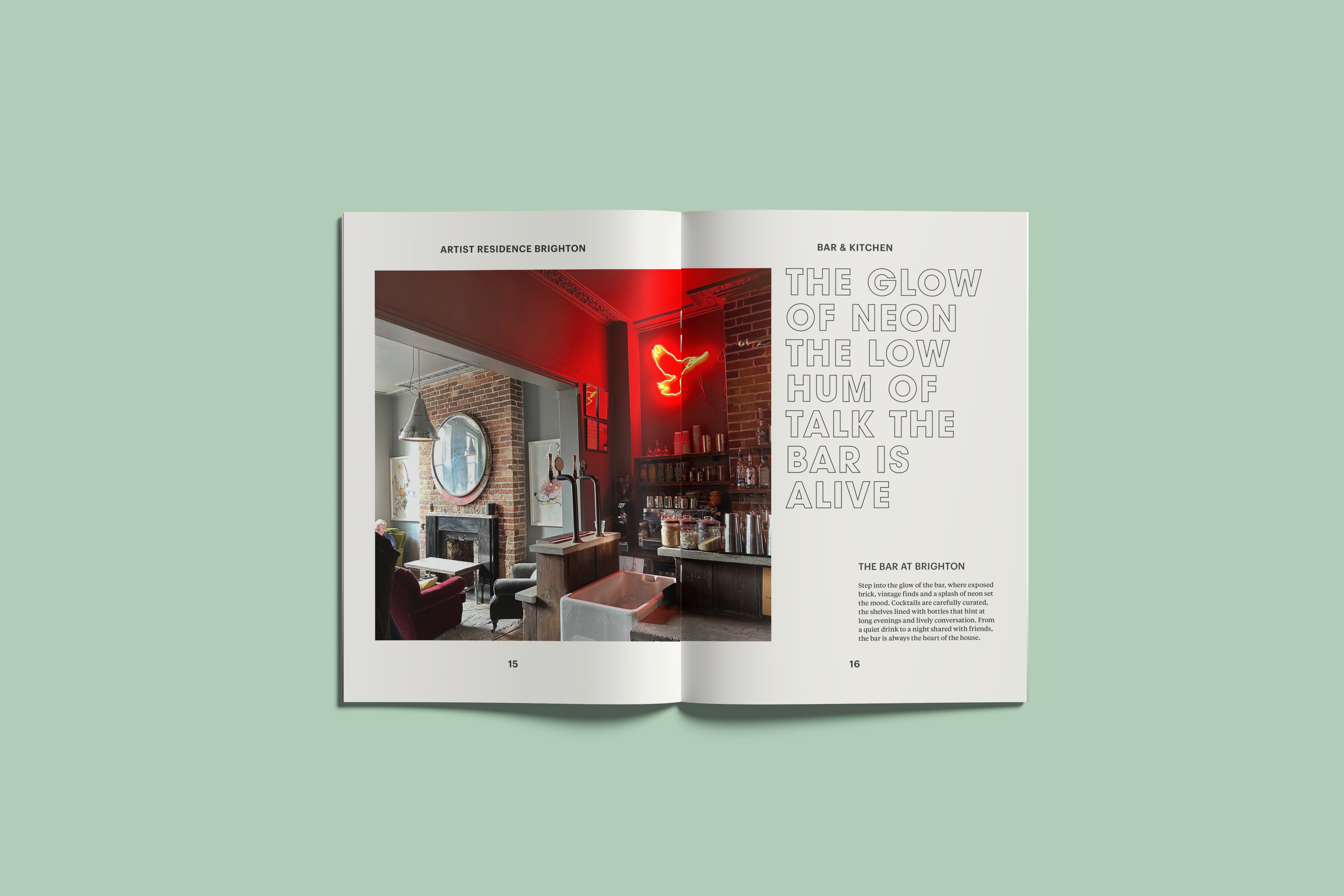 Artist Residence is defined by warmth, informality, and character. The design work shown throughout this project does not attempt to reinvent the brand, but instead works within existing guidelines to amplify what already exists: a sense of place, personality, and lived-in comfort. Design decisions are made to feel supportive rather than dominant, allowing materials, typography, and composition to quietly reinforce the brand’s hospitality-led ethos.