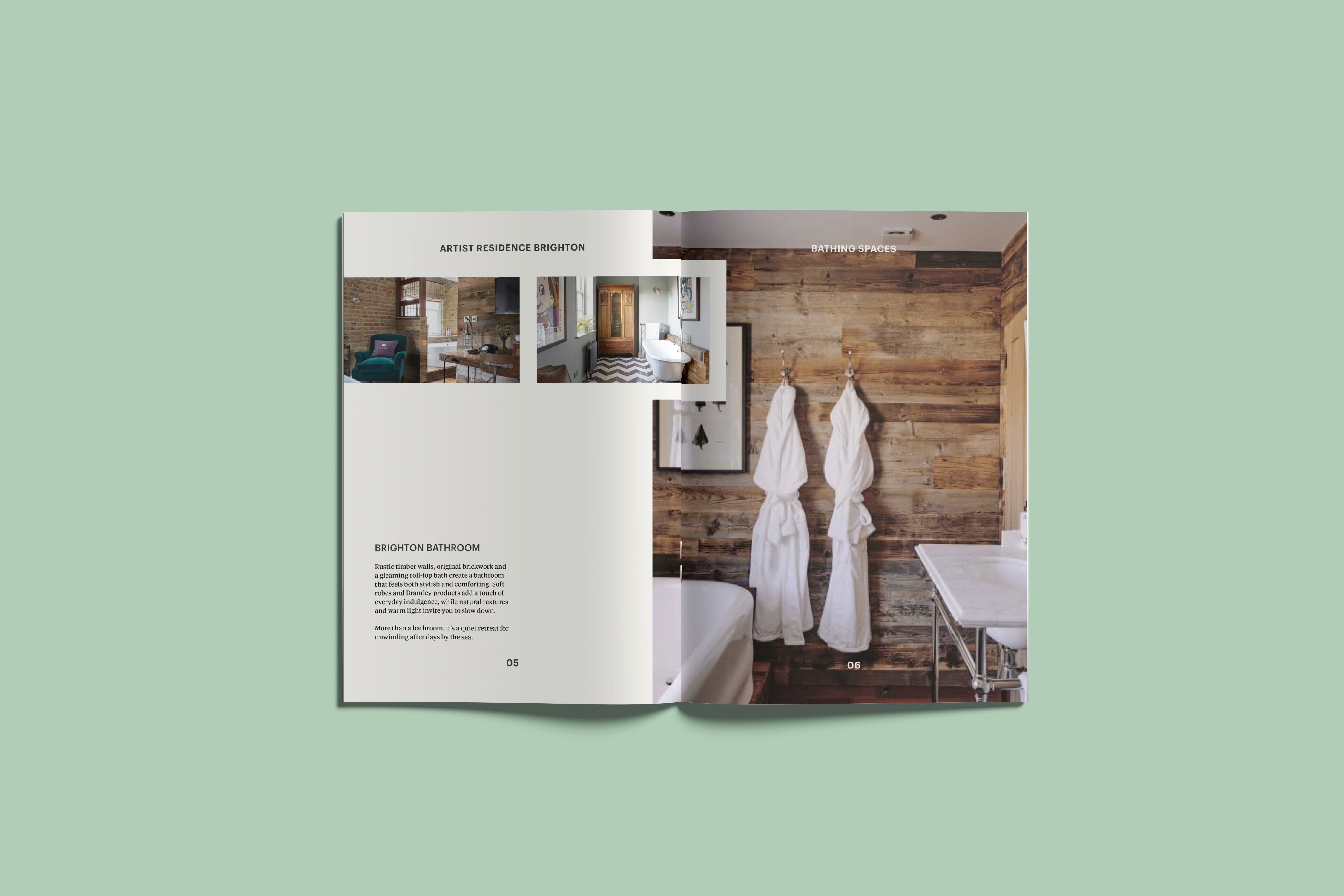 Editorial and lookbook-style layouts explore how the Artist Residence identity translates into longer-form storytelling. Pacing, whitespace, and typographic hierarchy are used to create calm continuity, allowing content and imagery to breathe. The layouts remain flexible rather than rigid, reflecting the brand’s balance between structure and informality.