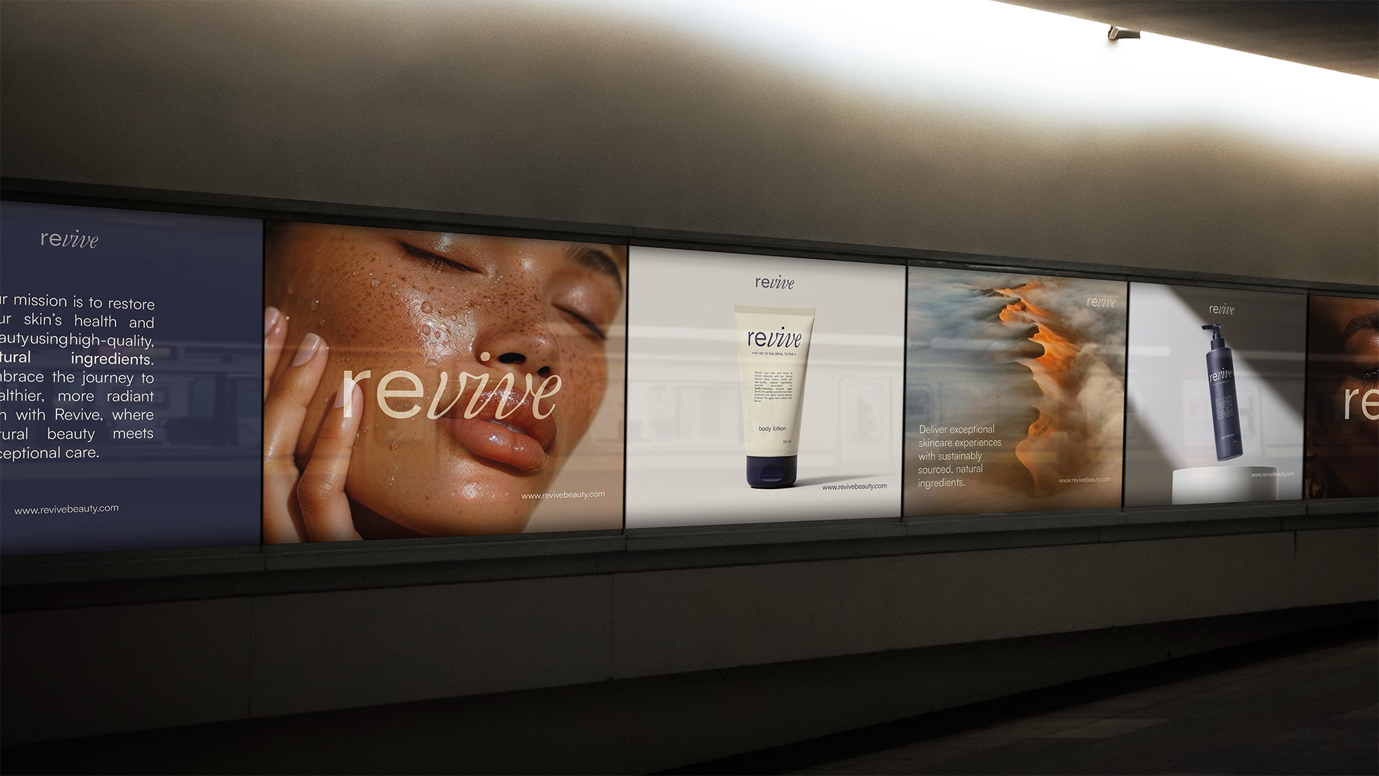 "Revive is a skincare brand focused on restoration, balance, and gentle confidence through calm visual language and considered product presentation.".