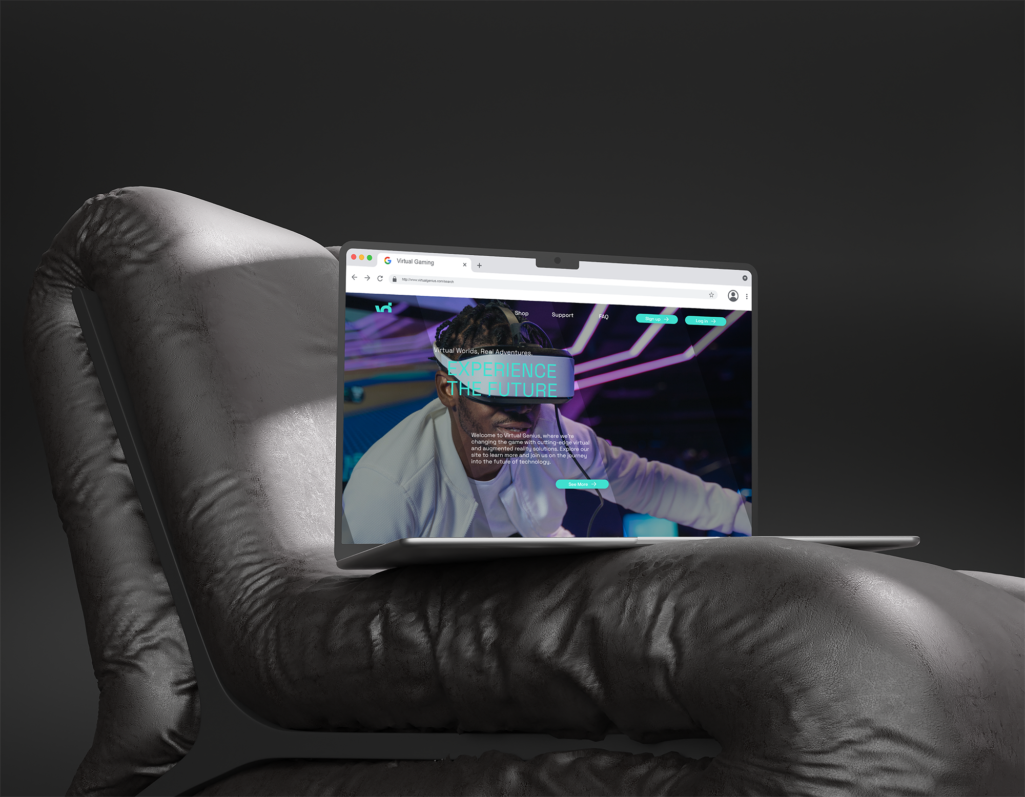 The digital experience translates the brand’s visual language into interaction. Motion, spacing, and pacing mirror the same clarity used in static compositions. Navigation feels fluid, reinforcing the idea that intelligence should feel intuitive rather than complex. The website positions Virtual Genius as a living system rather than a fixed presentation.